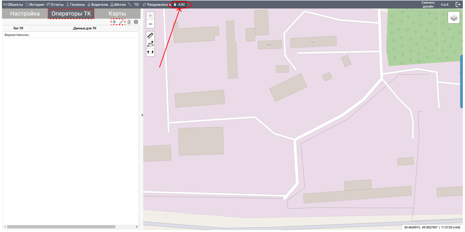Вкладка "АЗС" (автозаправочная станция) в системе Sputnic GPS предназначена для управления настройками, связанными с топливом. В этом руководстве описано, как найти вкладку и как работать с секциями "Операторы ТК" и "Карты".