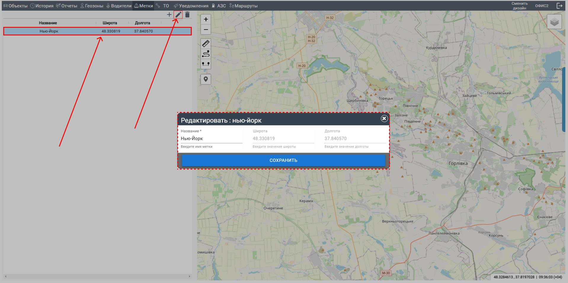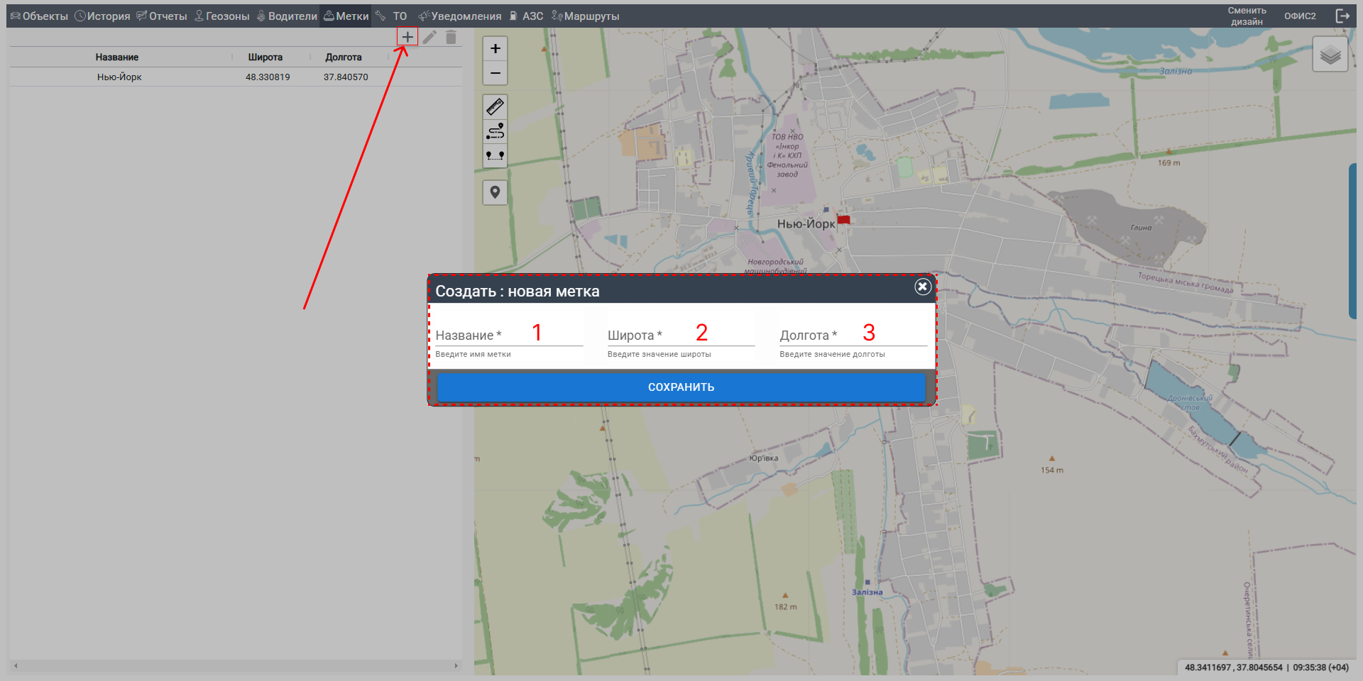 В этом разделе мы разберем, как работать с вкладкой "Метка", где можно управлять географическими метками, добавлять новые или редактировать существующие. Следуйте шагам ниже, чтобы освоить функционал.