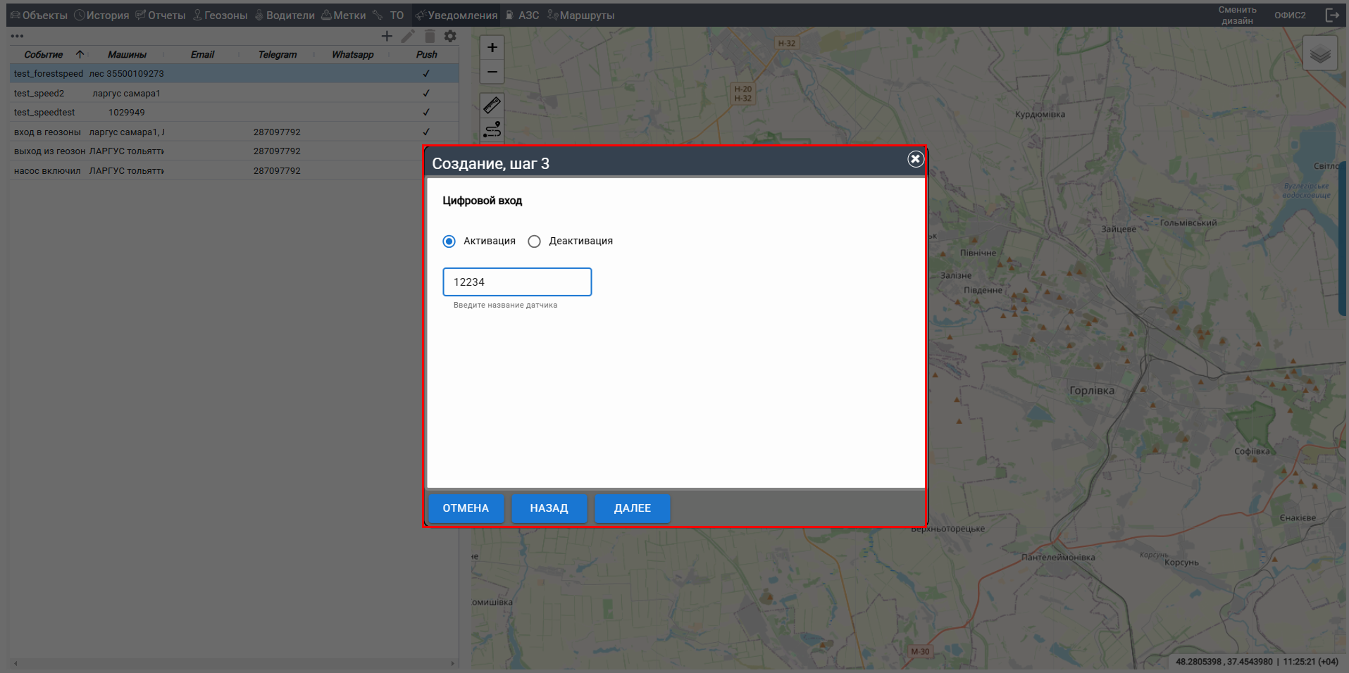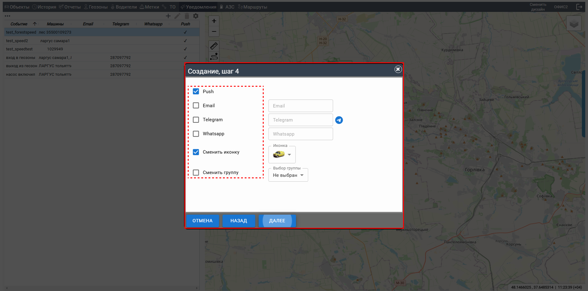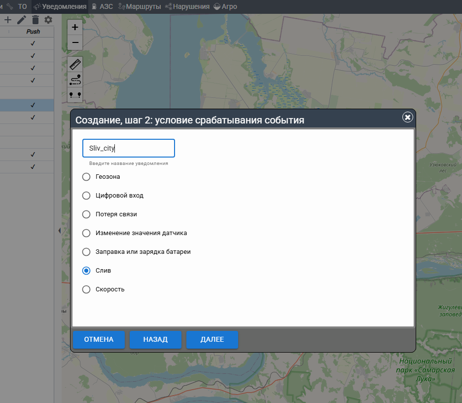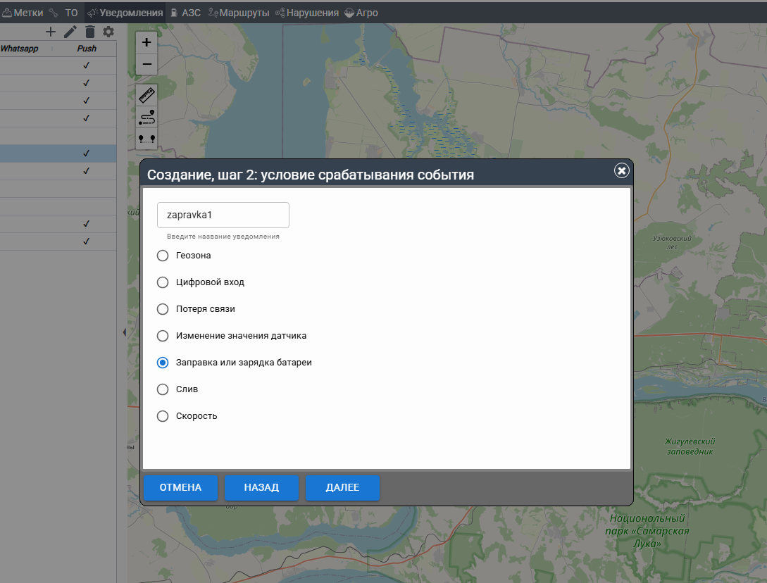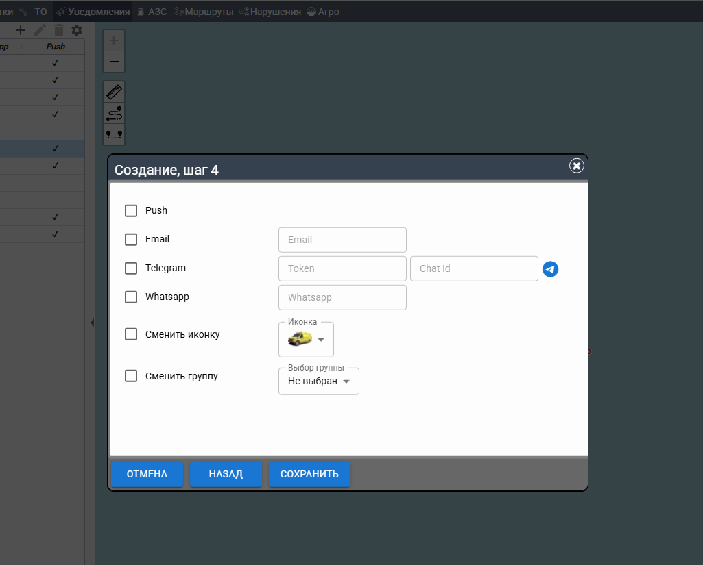 - Поставить отметку в “Push” для создания отправки уведомления на телефон